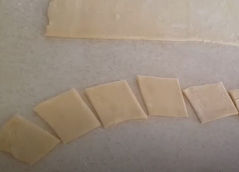 Tešlą padalinkite į mažus kvadratėlius arba rombus.