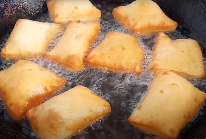 Kepti tešlos gabalėliai tampa traškūs išorėje ir purūs viduje. Šį universalų patiekalą galima valgyti su saldžiais priedais, sriubomis ar mėsa.