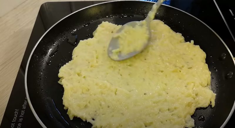 Bulvių masę suspaudžiame, sumaišome su pipirais, kiaušiniais, miltais, aromatinėmis žolelėmis, žalumynais.