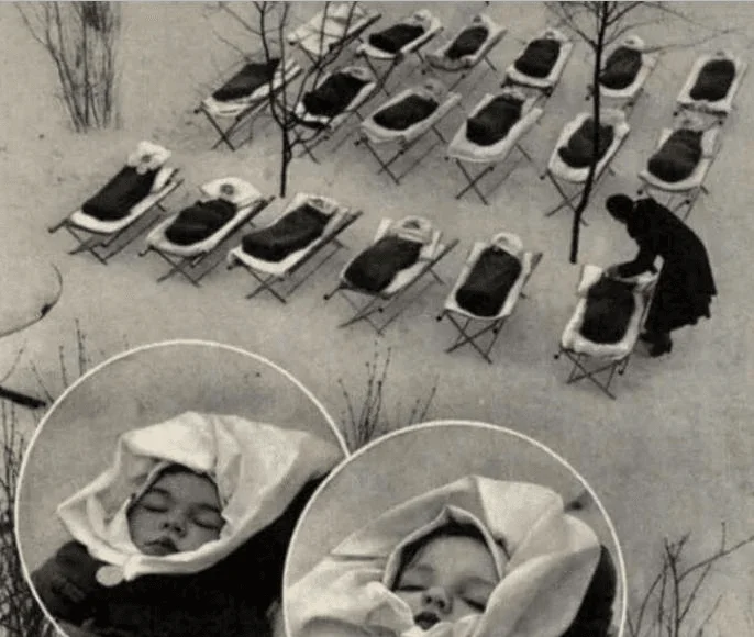 Vaikai miegodavo gryname ore. Lopšeliuose būdavo maniežų, vaikštynių.