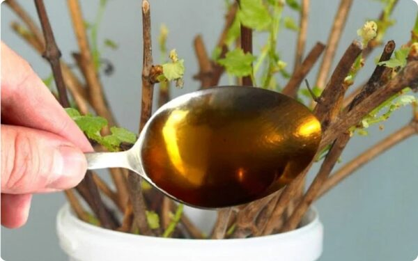 Medaus tirpalo paruošimas ir naudojimas: net ir sausiausias pagaliukas įsišaknys. Vienas arbatinis šaukštelis litrui vandens.