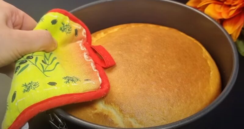20 cm skersmens kepimo skardą išklokite kepimo popieriumi ir supilkite tešlą. Kepkite biskvitą iki 180 °C (350 °F) įkaitintoje orkaitėje 30–35 minutes.