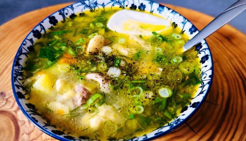 Į sriubą po virimo galite įpjaustyti krapų ir petražolių.