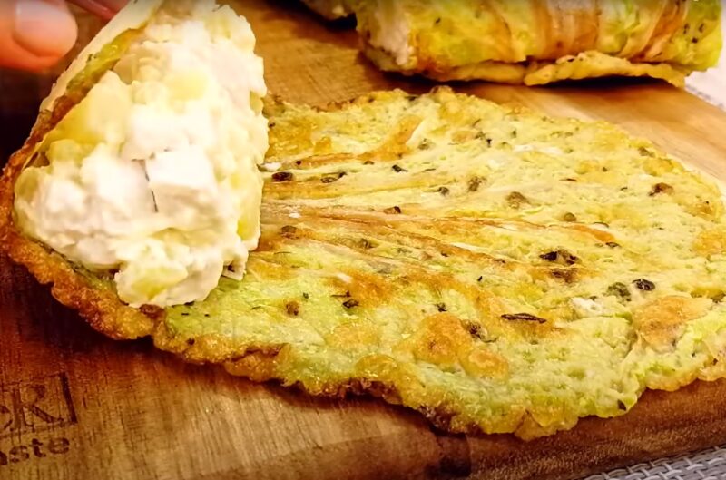Rezultatas – neįprastas ir skanus užkandis, pagamintas iš kopūstų, vištienos, bulvių ir sūrio.