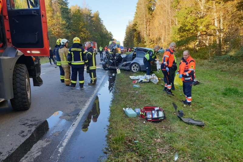 Pranešimas apie nelaimę gautas 15.58 val., pranešta, kad du automobiliai susidūrė kelyje nuo Šilutės link Saugų, eismo įvykio metu buvo prispaustų žmonių.