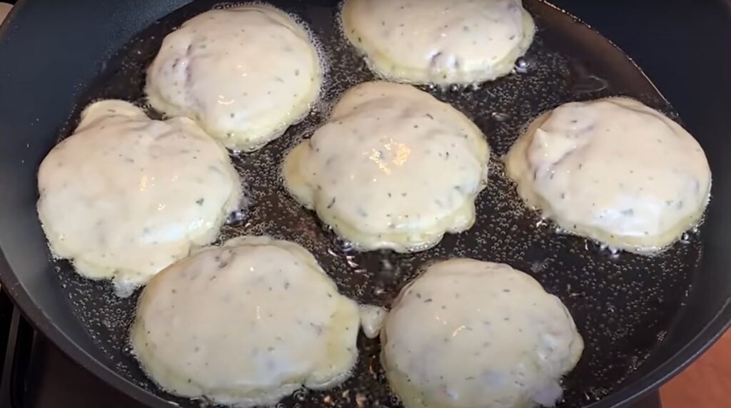 Sudėkite pyragėlius su tešla į keptuvę su įkaitintu augaliniu aliejumi. Kepkite ant vidutinės ugnies, uždengę, kol iš abiejų pusių gražiai apskrus.