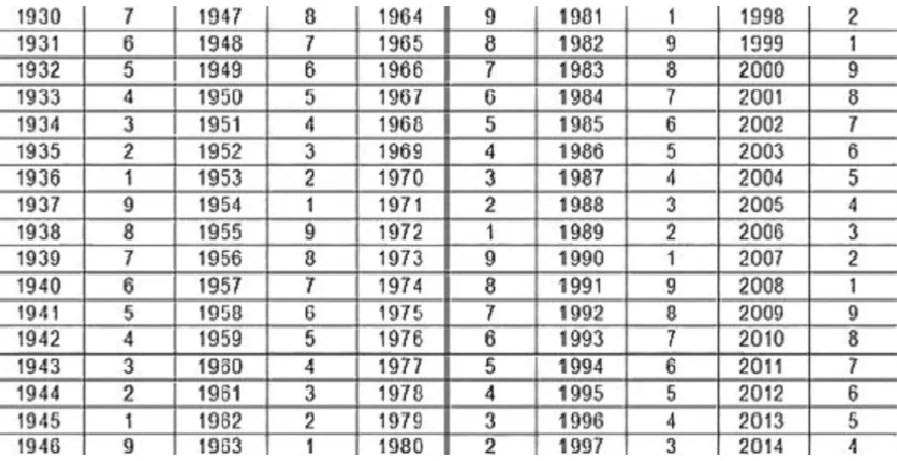 Lentelėje raskite savo gimimo metus