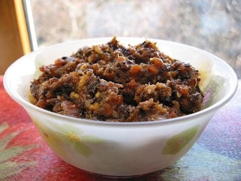 Smulkiai supjaustykite slyvas ir datules. Tada viską užpilkite verdančiu vandeniu ir troškinkite ant silpnos ugnies. Virkite šią „uogienę“, kol sutirštės.
