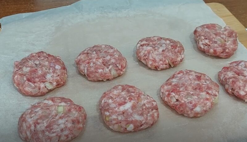 Iš maltos mėsos formuojame mažus kotletus.
