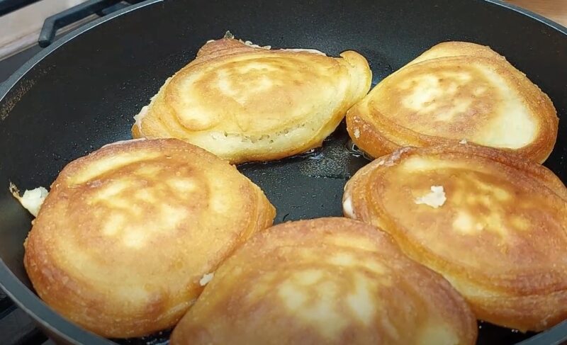 Kepkite pyragėlius po dangčiu, kol iš abiejų pusių taps aukso rudos spalvos.