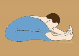 Iškvėpdami sutelkite dėmesį į tempimą – šiuo metu kojų sausgyslės ir raumenys bus lankstesni, kad būtų galima maksimaliai išsitempti. Pakartokite tai 5 kartus.Vaiko poza