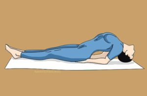 Atsigulkite ant nugaros plačiai išskėstomis rankomis. Dešinį kelį priglauskite prie krūtinės. Tada pasukite visą liemenį į kairę, laikydami nugarą tiesiai. Išlaikykite šią poziciją apie 3 minutes, tada pakartokite su kita puse. Ši poza labai naudinga visiems, kurie dažnai jaučia nugaros skausmus uodegikaulio srityje.