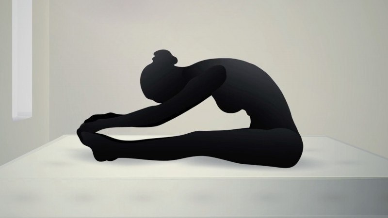 Atsisėskite tiesiai ir ištieskite kojas priešais save. Švelniai sulenkite link pėdų, bandydami jas paliesti pirštais. Nuolat susitelkite į kvėpavimą – kvėpuokite giliai ir lėtai. Įsiklausykite į savo kūną: skausmo ir bet kokio diskomforto negalima toleruoti.