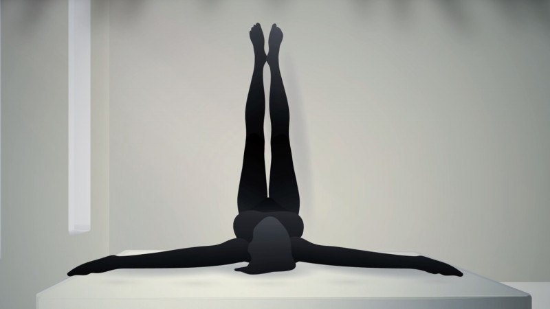 Kojos ant sienos Norėdami atpalaiduoti kojų raumenis, atsigulkite ant nugaros ir pakelkite tiesias kojas ant sienos.