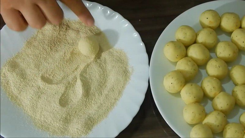Suformuokite rutuliukus ir apvoliokite juos smulkiuose džiūvėsėliuose.