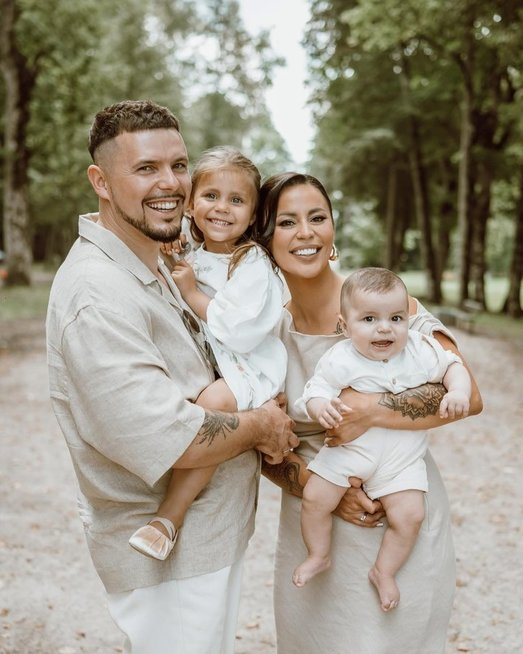 Šiandien pora skaičiuoja septintus metus kartu, o šį rugpjūtį bus lygiai treji metai, kai jie susituokę. Šeimoje auga du vaikučiai – ką tik penktojo gimtadienio sulaukusi dukra Estelė ir netrukus pirmąjį gimtadienį minėsiantis Herkus. Kol tėtis repetuoja, važinėja po koncertus, vaikais ir namais rūpinasi Evelina. Ji neslepia, kad kartais būna labai sunkių dienų, ypač, kai vaikai suserga, bet moteris supranta, kad tai – laikinas etapas.