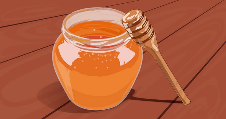 - Į nedidelį dubenį įdėkite 3 šaukštus cukraus ir 1 šaukštą medaus.