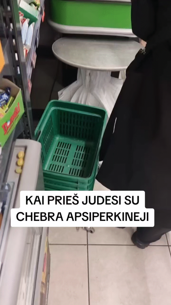 „Kai prieš judesį su chebra apsipirkinėji“, – ironizuojama prie vaizdo įrašo.