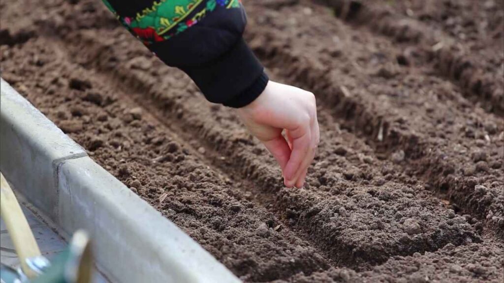 - Naudokite sausas sėklas , nemirkytas. Išbarstykite jas vagelėse ir užberkite sausu smėliu arba puria žeme.