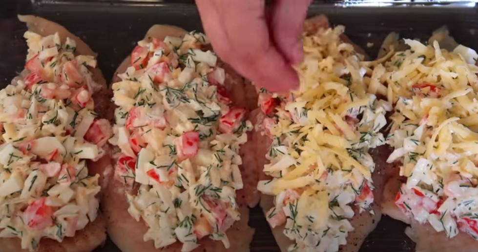 Įdėkite jį į vištienos krūtinėlę. Į viršų galite pridėti tarkuoto sūrio.