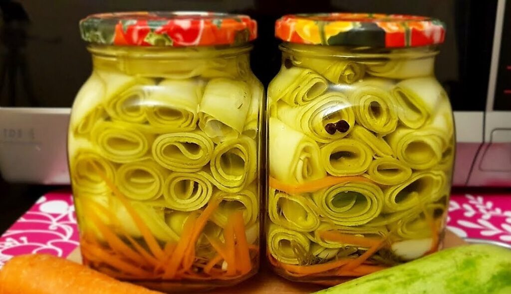 Labai neįprastas išsaugojimas – cukinijos dedamos į skardines su spiralėmis ir gauti labai skanų ir gražų patiekalą – užkandis.