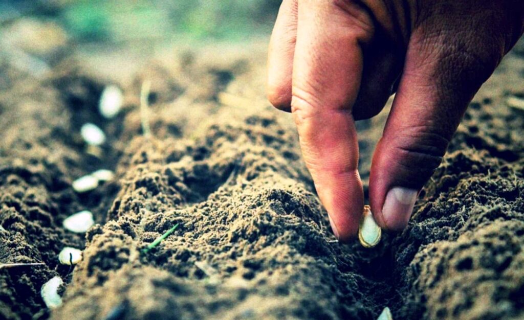 Mes gaminame griovelius su kelių centimetrų gyliu, sodiname tam tikru atstumu vienas nuo kito, užmiegame su dirvožemiu ir izoliuojame – mes tręšiame kompostu ar humusu.