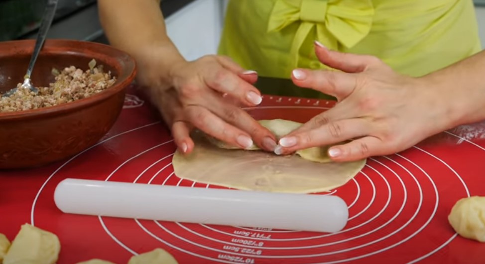 Antrajam įdarui virta mėsa susmulkinama mėsmale ir sumaišoma su skrudintais svogūnais. Mes bandome druską ir įpilame pipirų, galite česnakuoti. Tai yra antrasis įdaras.