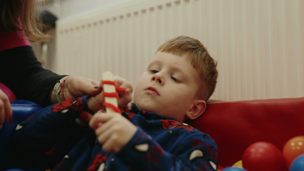 Jo rankos ir kojos silpnesnės, bet jis eina, valgo, moka nusirengti apatinę drabužių dalį – viršutinės dar nepavyksta dėl silpnų rankyčių.