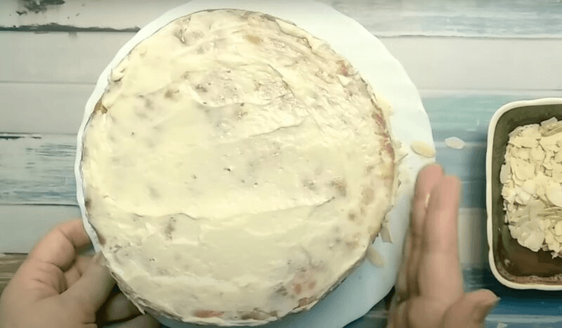 Gautą pyragą galite apibarstyti migdolų drožlėmis, tai suteiks tortui gražios išvaizdos ir naujų skonio natų.