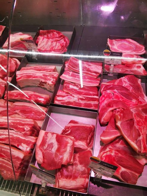 Mėsos skyriuje jie rinkosi, iš kokios mėsos tą vakarą būtų galima pasigaminti vakarienę.