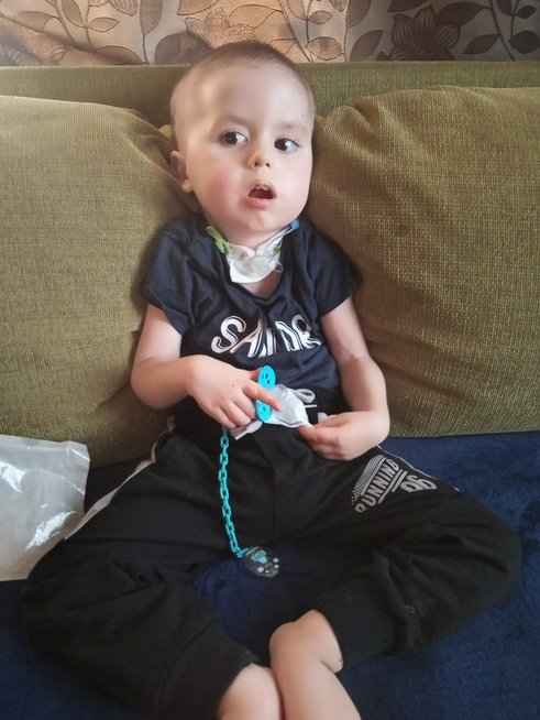 „Jis nevaikšto, nesėdi, nes vaistus pradėjome gauti pavėluotai. Jis turi tracheostomą, gastrostomą, yra maitinamas enteriniu būdu“, – pasakojo mama.