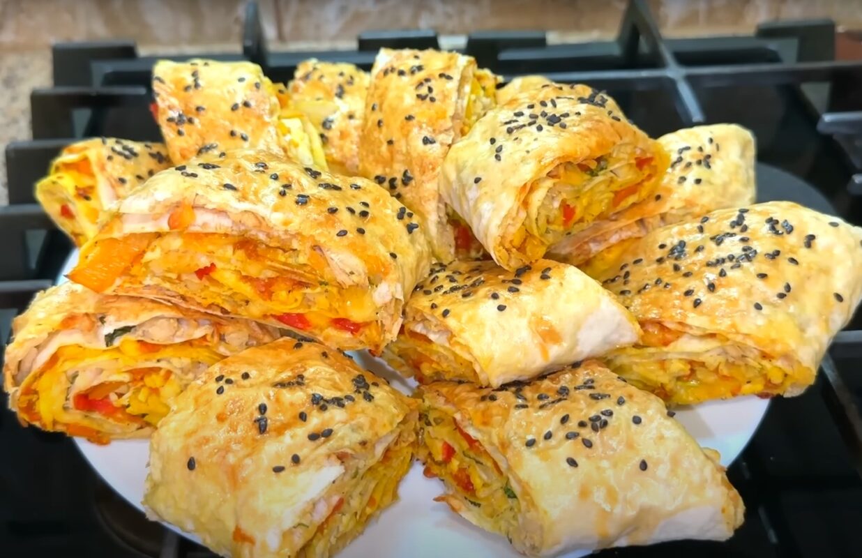 Pasirodo, kvapnus skanus patiekalas iš lavašo. Du sultingi įdarai puikiai derinami ploname lavašo bandyme.