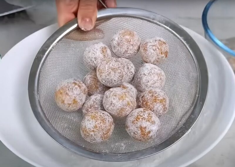 Pabarstymui cukraus milteliai sumaišomi su sausu pienu. Įdėkite spurgas į mišinį ir sugriaukite juos į miltelius.