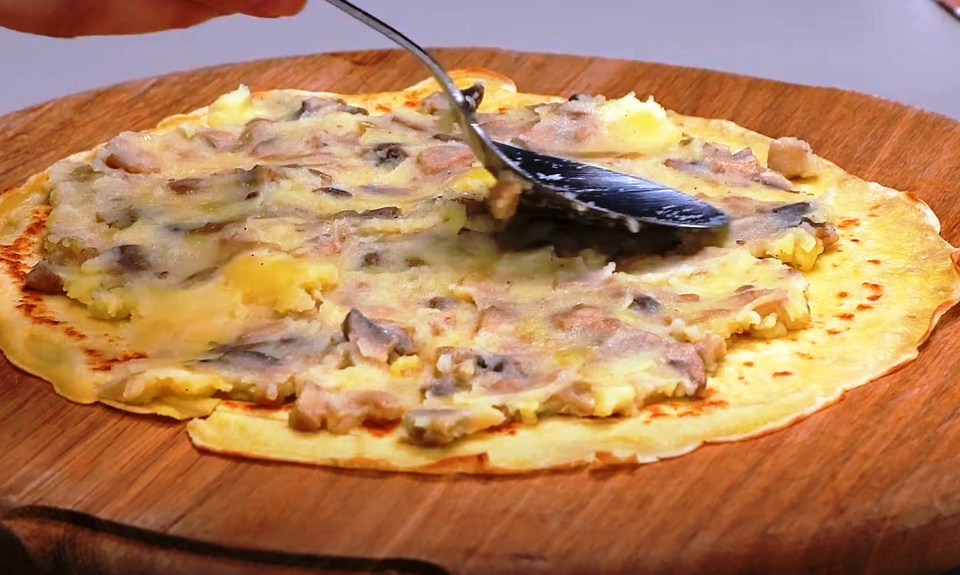 Stiklo forma yra padengta pergamentu. Supilkite ruošinį į pelėsį ir tolygiai pasiskirstykite ant viso paviršiaus.