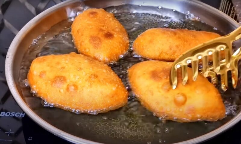Palikite pyragus 10 minučių. Keptuvėje pašildome augalinį aliejų, kepame pyragus iš abiejų pusių į auksinę plutą.