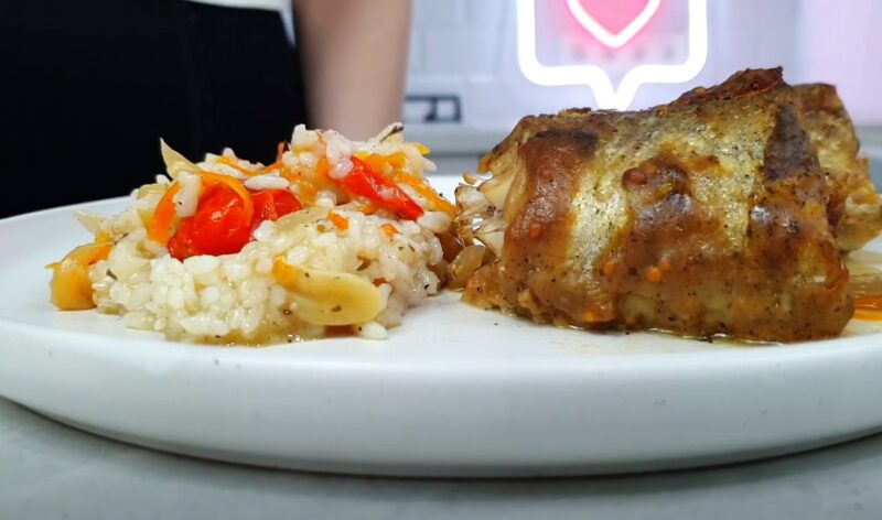 Keptu polock galite virti ryžius, tai yra geras garnyras patiekalui.