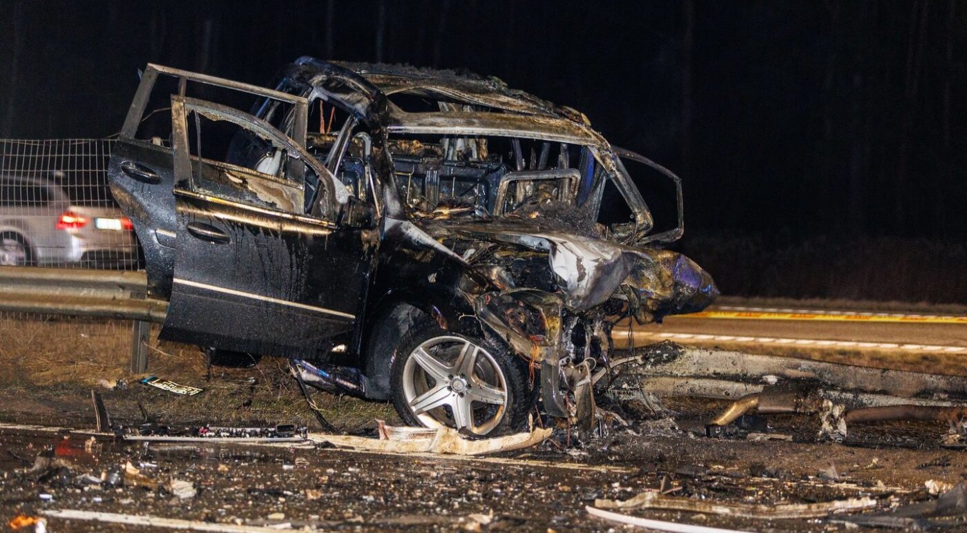 Į tragedijos vietą sulekia visos specialiosios tarnybos. Ugniagesiai užgesina Mersedesą, o iš po suknežinto BMW ištraukia ir jį vairavusio 61 metų vyro kūną.