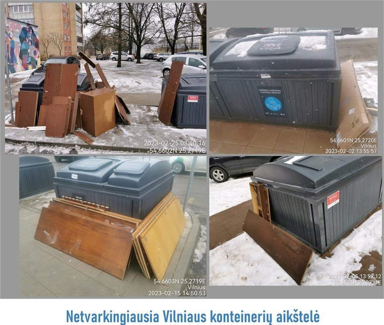 VASA socialinio tinklo „Facebook“ paskyroje galima rasti daugybę netvarkingiausių Vilniaus konteinerių aikštelių nuotraukų su datomis ir adresais.