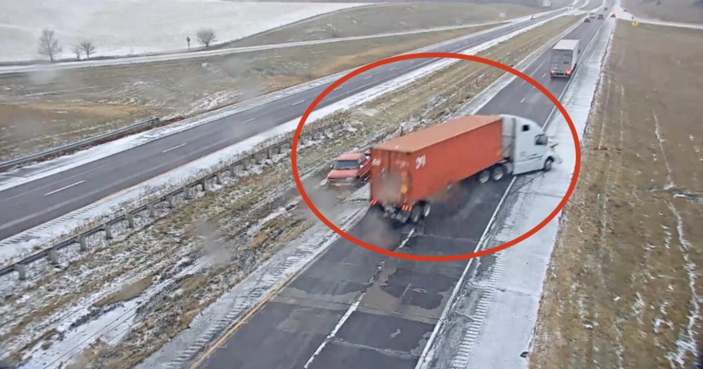 Ajovos valstijos patruliai savo „Twitter“ paskyroje paviešino vienos vilkiko avarijos vaizdo įrašą. Jame matyti, kaip plonu ledo sluoksniu padengtame kelyje vilkiko vairuotojas nesuvaldė transporto priemonės ir tik per plauką neatsitrenkęs į kitą nuvažiavo nuo kelio.