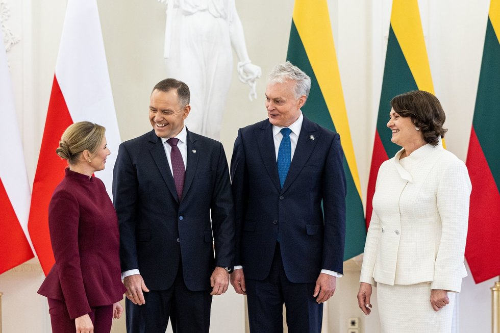 ELTA primena, kad šeštadienį prezidentas G. Nausėda su pirmąja ponia D. Nausėdiene lankėsi Varšuvoje, kur susitiko su Lenkijos prezidentu K. Nawrockiu bei jo žmona M. Nawrocka.