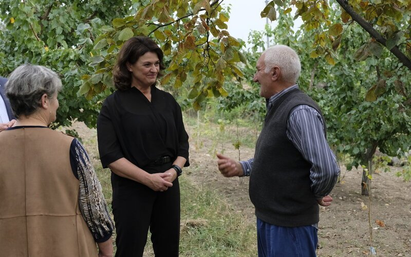 Vizitą Sakartvele tęsianti pirmoji ponia Diana Nausėdienė trečiadienį aplankė kartvelų šeimą, gyvenančią Patara Khurvaleti kaime, šalia Rusijos okupuoto Cchinvalio (Pietų Osetijos) regiono administracinę liniją žyminčios koncertinos.