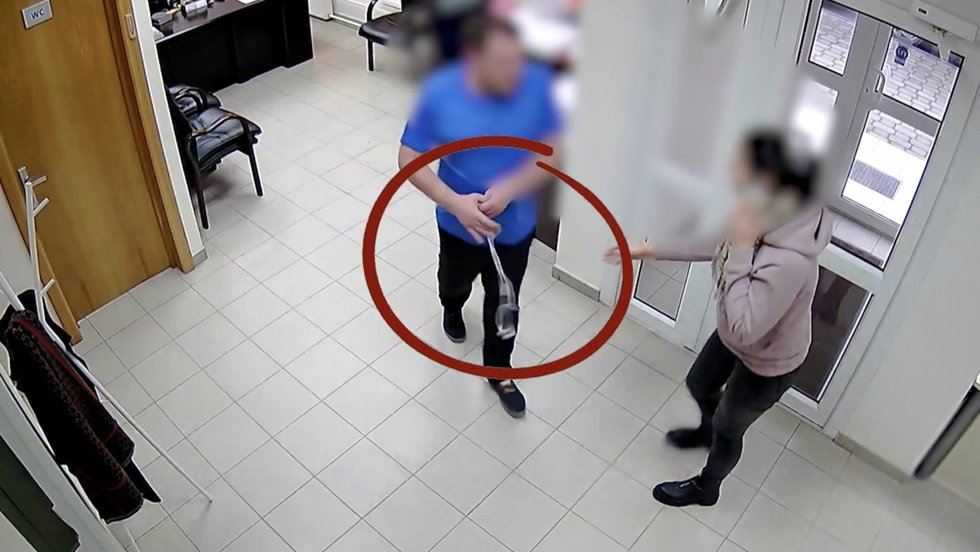 Stebėjimo kamerų nufilmuotoje medžiagoje matyti, kaip galimai apsvaigęs Evelinos viršininkas atima iš jos ausines, o jai norint jas atsiimti, ima stumdytis ir galiausiai ėmė trankyti ją tuo, kas papuolė po ranka.