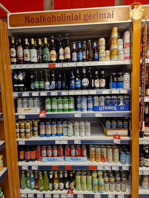 Tad sūnui sutikus kitą dieną jau stovėjome vienoje maisto prekių parduotuvėje prie gausiai nealkoholiniais gėrimais nukrautų lentynų.