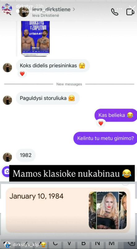 „Instagram“ paskelbtame susirašinėjime matyti, kaip mama palaiko sūnų prieš kovą ir tiki jo pergale. Pokalbis atrodė įprastas, kol sportininkas staiga paklausė, kuriais metais ji gimė. Mama atsakė – 1982.