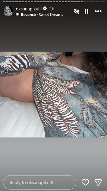 O. Pikul Instagram istorijoje pasidalijo nuotrauka, kurioje – šalia lovoje gulintis D. Dirkstys.