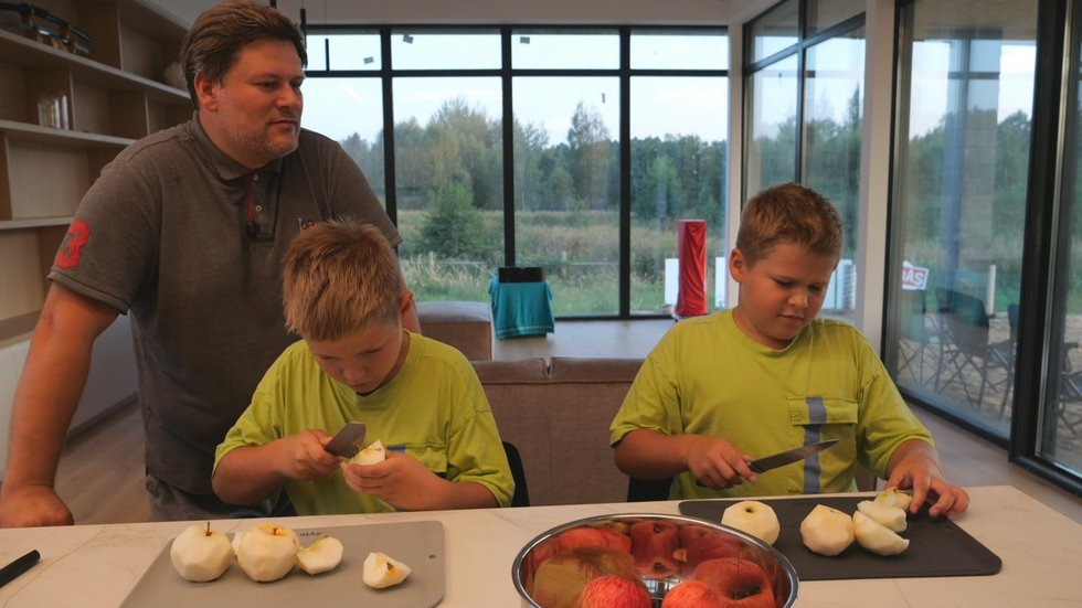 „Stengiamės daryti taip, kad nereikėtų vienam žmogui užversti viso darbo, todėl pasiskirstome, kas ką daro. Močiutė pagamina vieną patiekalą, aš – kitą, Merūnas dar kuo nors prisideda.