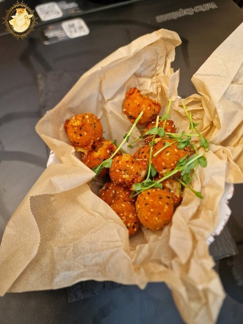 Naminės 4 rūšių sūrio spurgos – 11,50 €. Sūrio spurgą paragauti gavau tik vieną, ir tą, jei būčiau ilgai žioplinėjęs, būčiau pražioplinęs. Labai skanios spurgytės su tokiu lengvu aitrumu.