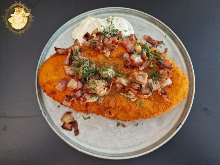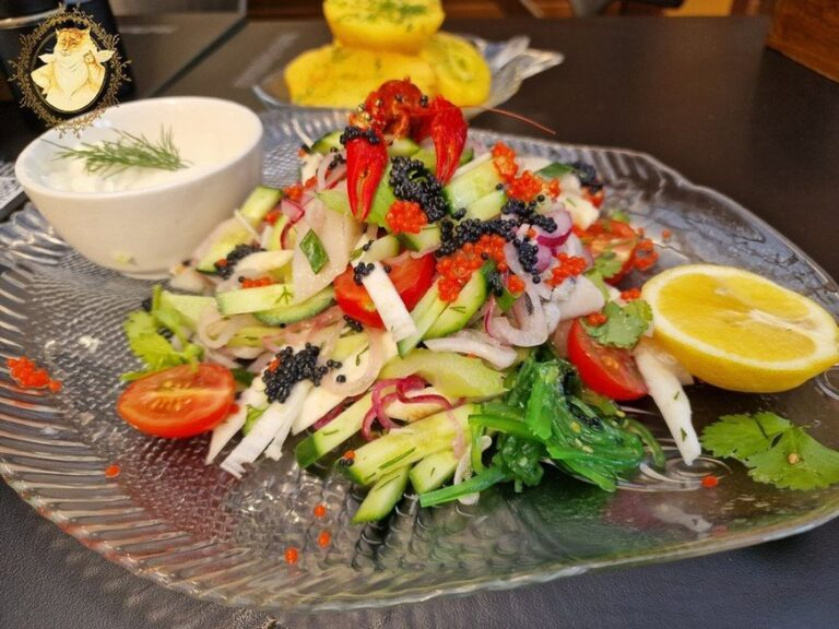 Naminiai bulviniai blynai su česnakine varške ir lašiša – 10,50 €. Mano mamai labai patiko bulviniai blynai su lašiša.