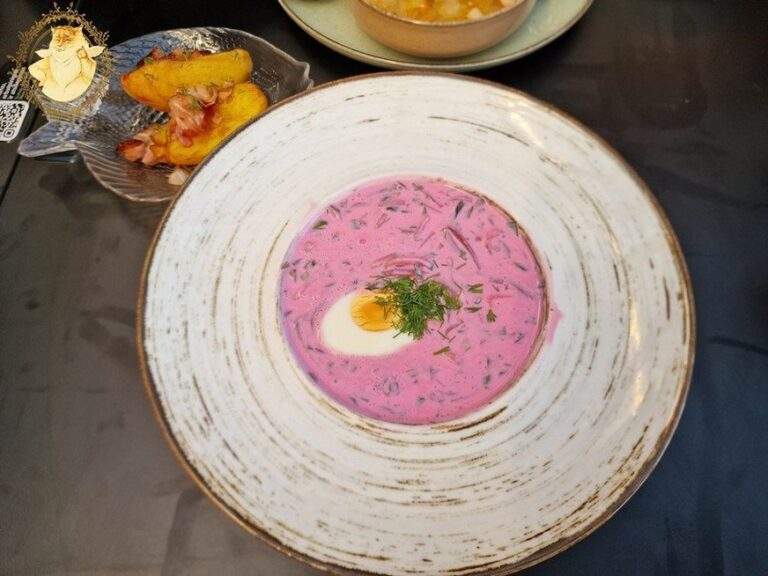 Šaltibarščiai – 5,50 €. Šaltibarščius valgiusiam labiausiai patiko bulvių patiekimas, su ta apkepta šonine.