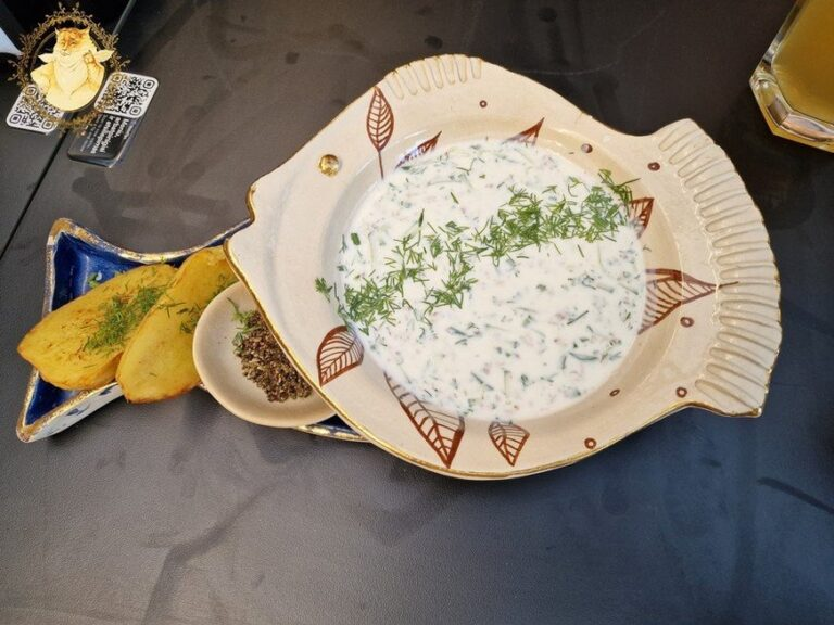 Gruziniškas šašlykas – 16,00 €. Šašlyko kasniuką pavyko ir man paragauti. Mintį marinuojant šiuos šašlykus į marinatą įdėti kiek daugiau aitriųjų paprikų aš vertinu teigiamai.